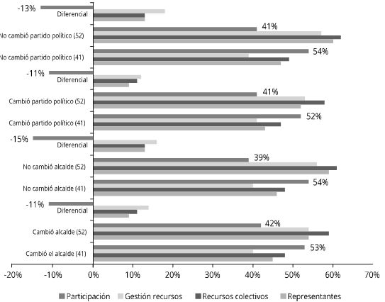 En general, todos los indicadores, salvo el de participación, han variado al alza con independencia de los cambios de partido en el poder. El Gráfico 1 permite la visualización de estos datos.