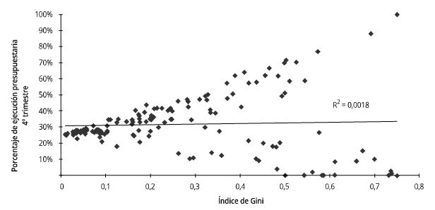 Gráfico 2. Índice de Gini vs. Porcentaje de ejecución presupuestaria 4° trimestre