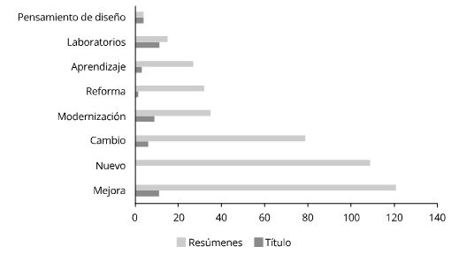 Durante el análisis, quedó claro que en este corpus la palabra innovación se estaba utilizando para reemplazar o servir como sinónimo de conceptos existentes en la comunidad de administración pública iberoamericana. Por esa razón, el segundo grupo de códigos en el Gráfico 3 muestra cada vez que hay una referencia a la innovación y uno de estos conceptos cercanos en el mismo título o resumen, y parece que se usan indistintamente o cuando la innovación se explica en términos de estos conceptos.